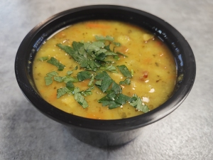 I DANIE- Krem z brokułów z groszkiem ptysiowym
