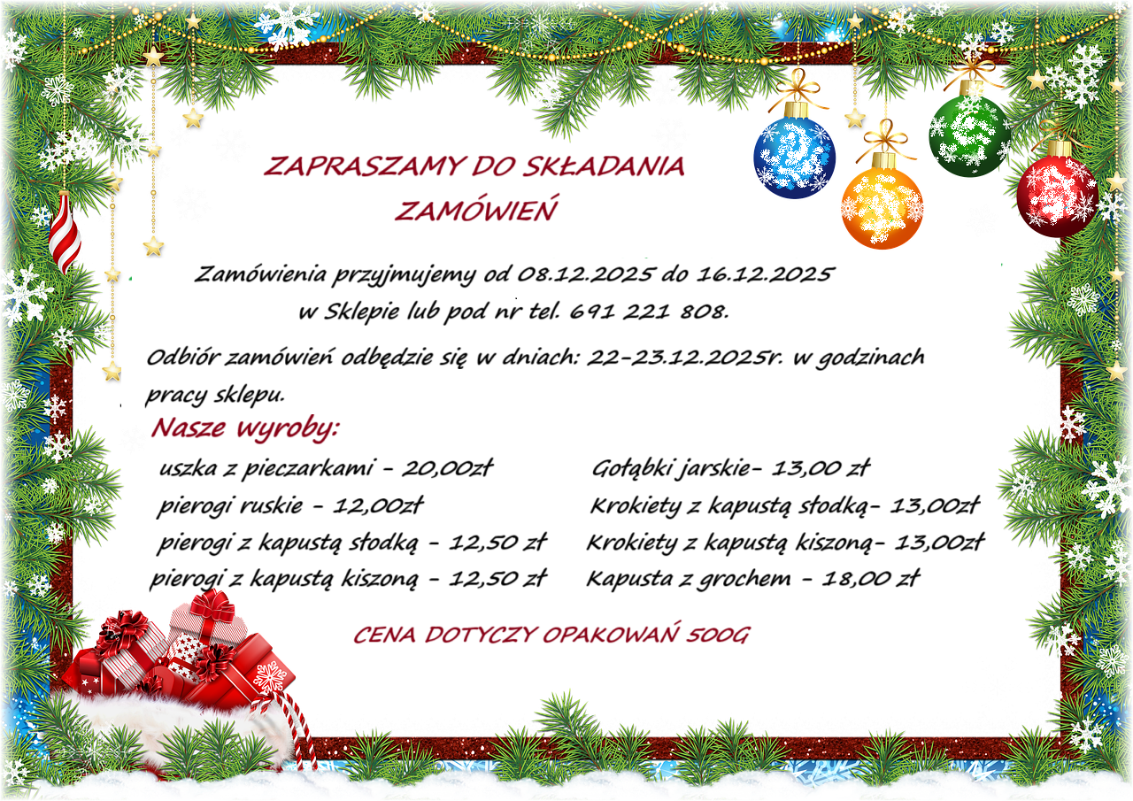 Zapraszamy do składania zamówień na uszka, pierogi, krokiety, gołąbki.......